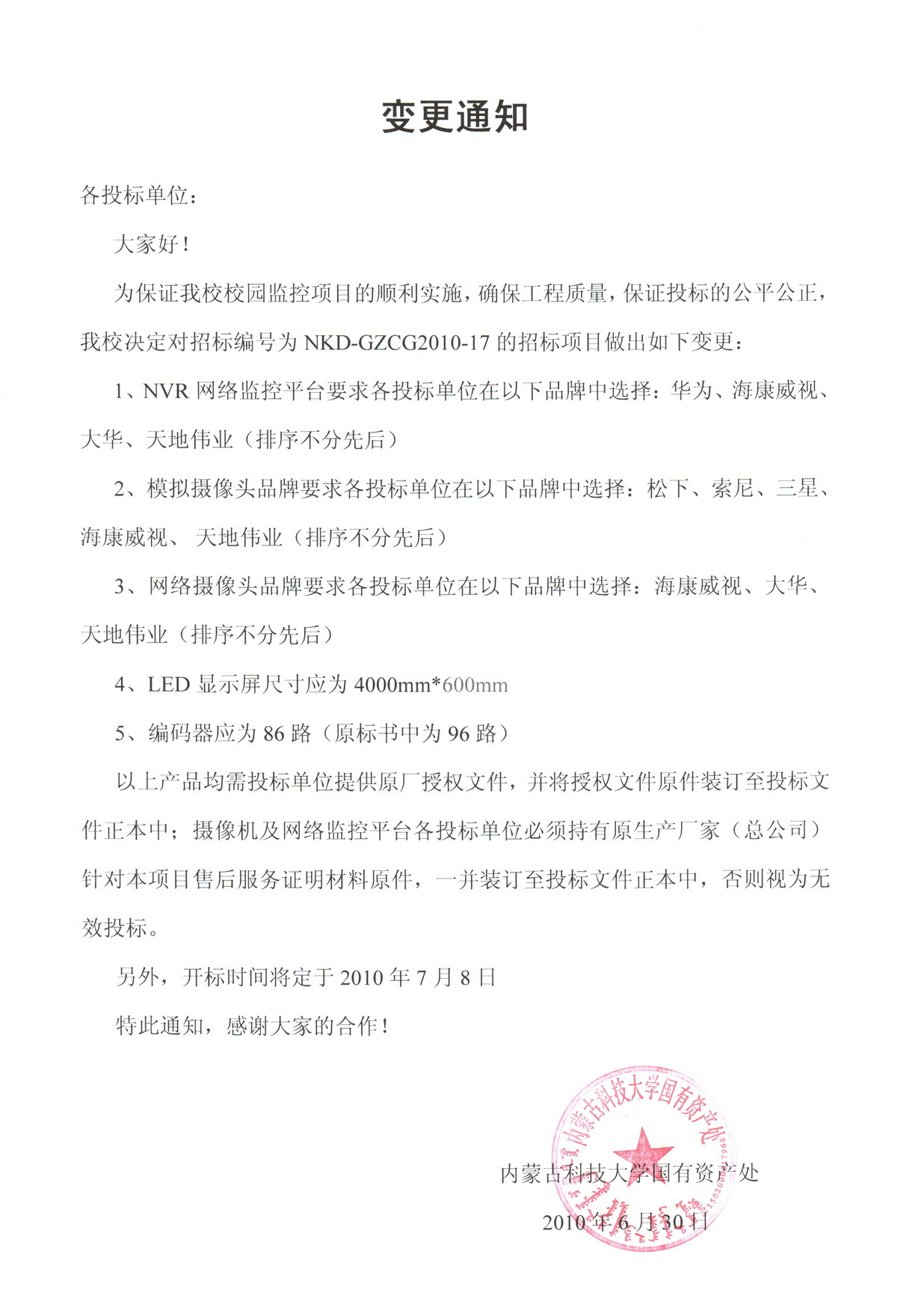 NKD-GZCG2010-17招标采购变更通知