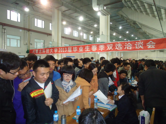 3月23日上午,我校2013年春季毕业生双选洽谈会在校体育馆举行。 为办好本次双选会,校党委常委、副校长李国雄亲自带队走访用人单位,招就处及各学院通过电话、邮寄邀请函等不同方式联系用人单位,积极邀请用人单位参加本次双选会。 本次双选会为期1天,到会单位达125家,累计提供就业岗位约3100个。 我校毕业生积极踊跃,近4000名毕业生参会,会场签约达220余人,还有近200余名毕业生与用人单位达成了就业意向。